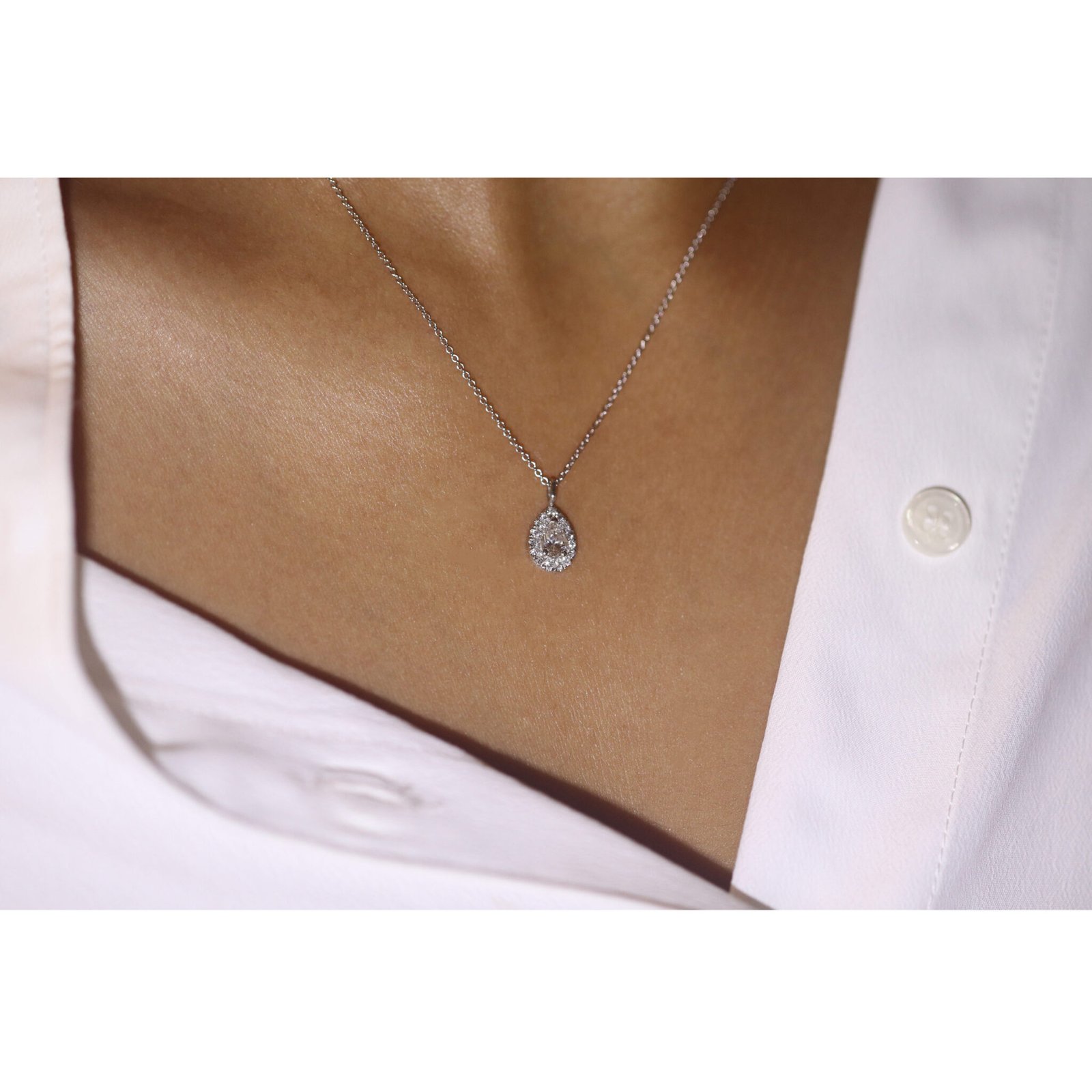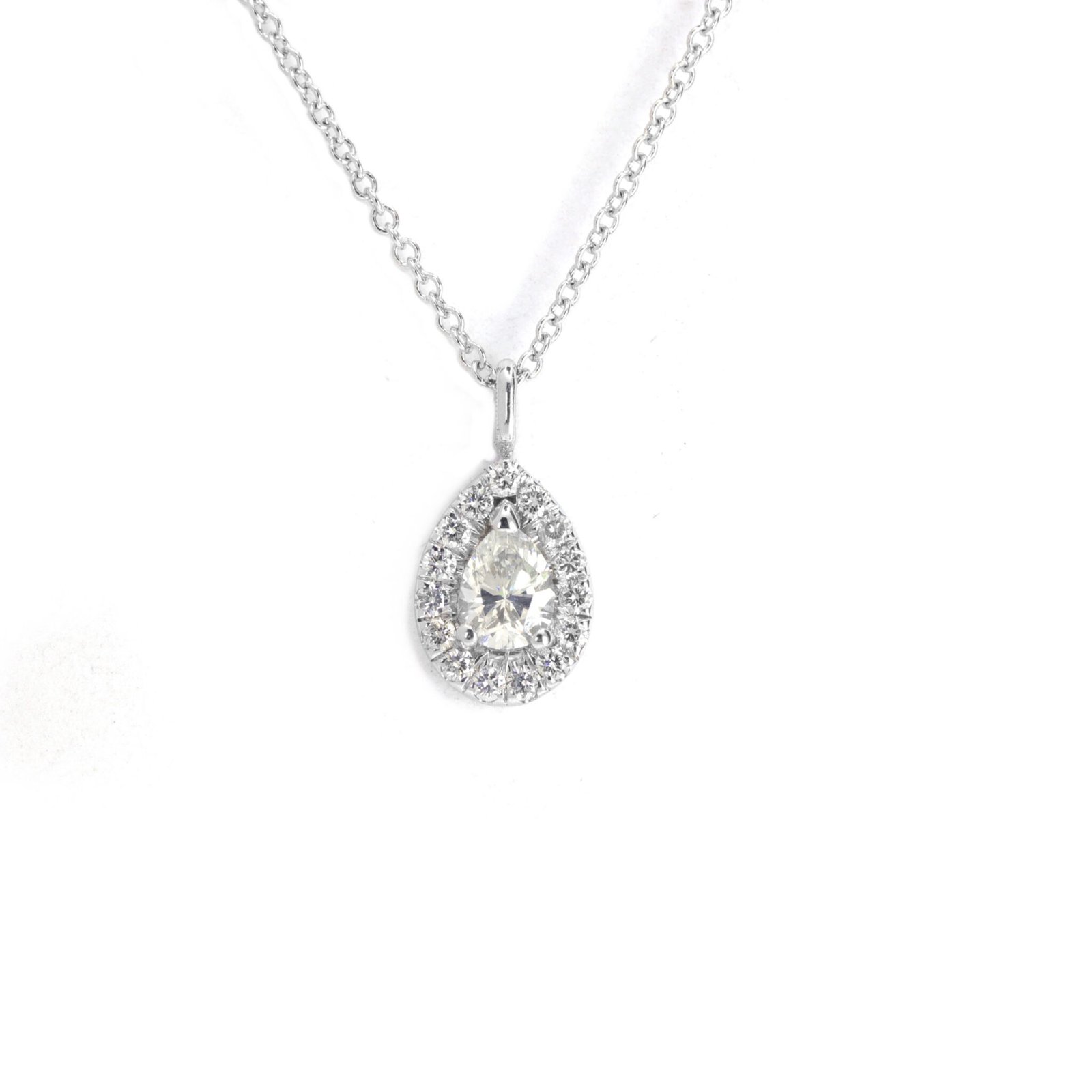Drop diamond pendant with halo